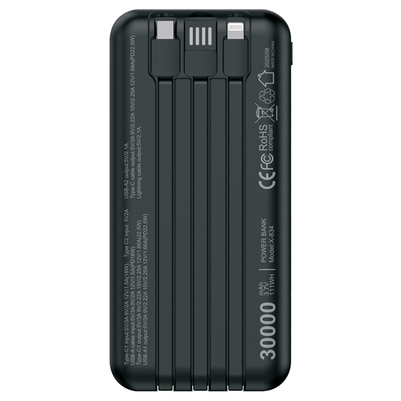 پاور بانک فست شارژ ایکس انرژی X-834 QC3.0 PD 22.5W ظرفیت 30000 میلی آمپر ساعت